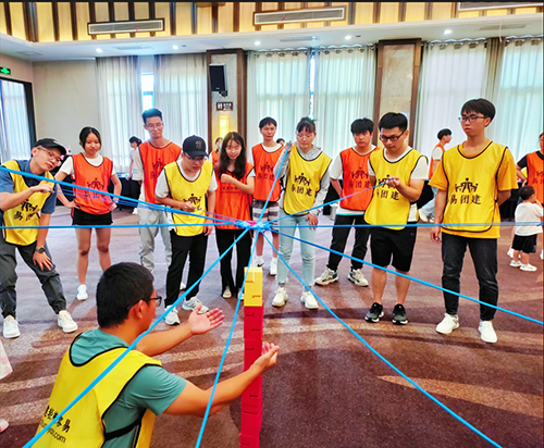“合力建塔”也是非??简瀳F隊合作的一項活動,需要每位隊員在不用手觸碰,只靠牽引繩的情況下搭起高塔,幾根長長的繩索就是大家傳遞力量的紐帶。這個項目需要大家發(fā)揮合力,快速而又沉著地完成任務,是團隊協(xié)作能力的最好詮釋?;顒又嘘爢T們圍圈而動、聚焦中央,個個屏息凝神,緊張到手心出汗,舉力、拉滿、移位、對接、下放……每一個動作大家都全神貫注、絲絲扣力,不敢有一絲怠慢。通過這個活動,參賽的團隊收獲了建塔的喜悅,更拉近了同事的距離,懂得了通力合作的意義。